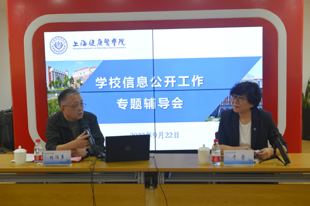 为进一步做好学校信息公开工作,2022年9月22日,学校党委办公室、校长办公室特邀市教委原副秘书长、市教委办公室信息公开特聘专家林洵多来校做辅导报告,校党委副书记于莹出席辅导会并致辞,23个相关职能部门的负责人、信息公开工作专员参加培训,会议由党校办副主任陈泓主持。
