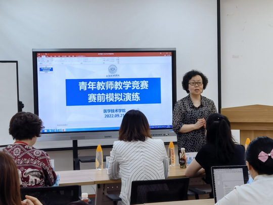 百年大计,教育为本;教育大计,教师为本。高校青年教师已成为高校师资队伍的主力军和高等教育事业未来发展的支柱。为了提高教师的教学能力和专业素养,提升教学质量,营造更为良好的学风氛围,打造更为专业的师资团队,与学校的教学目的相得益彰,9月21日下午,医学技术学院开展了“青年教师教学竞赛”赛前模拟演练,同时为参赛的青年教师搭建了一个沟通学习的平台。