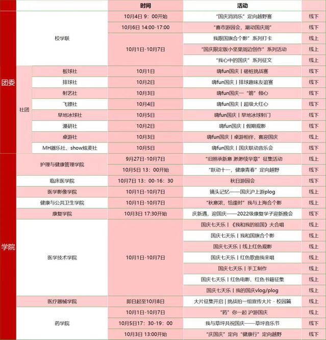为做好国庆期间疫情防控工作,丰富留校学生的校园生活,学校精心策划组织了观影、定向越野、游园会、迎新晚会、草坪音乐节、祝福祖国等爱国主义教育和校园文化活动。同时,三个校区的图书馆(10月4日-7日)、体育运动场全天开放,保证在校师生度过一个健康丰富愉快的假期。