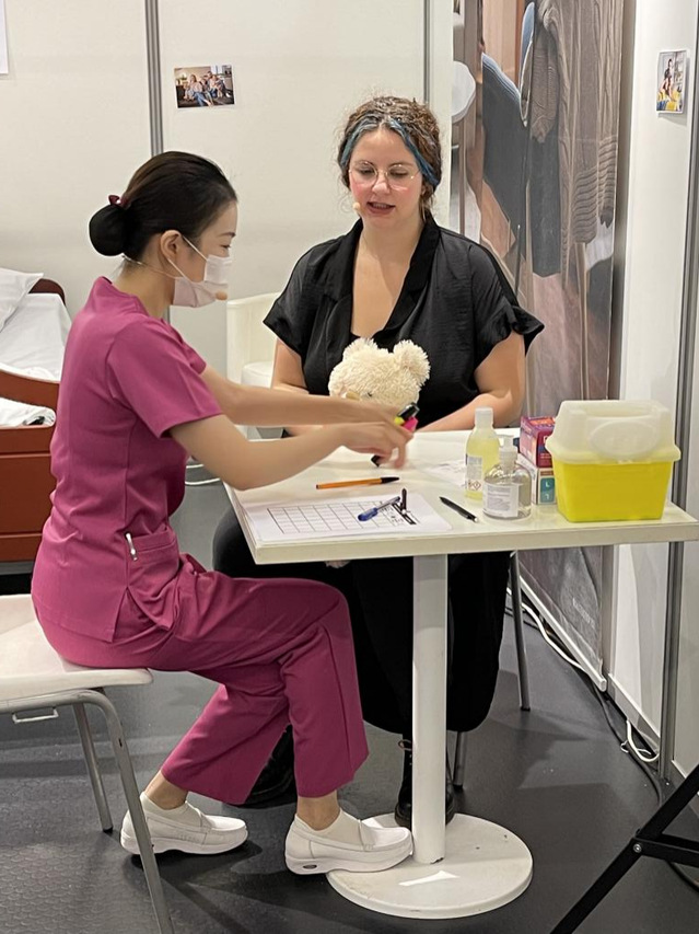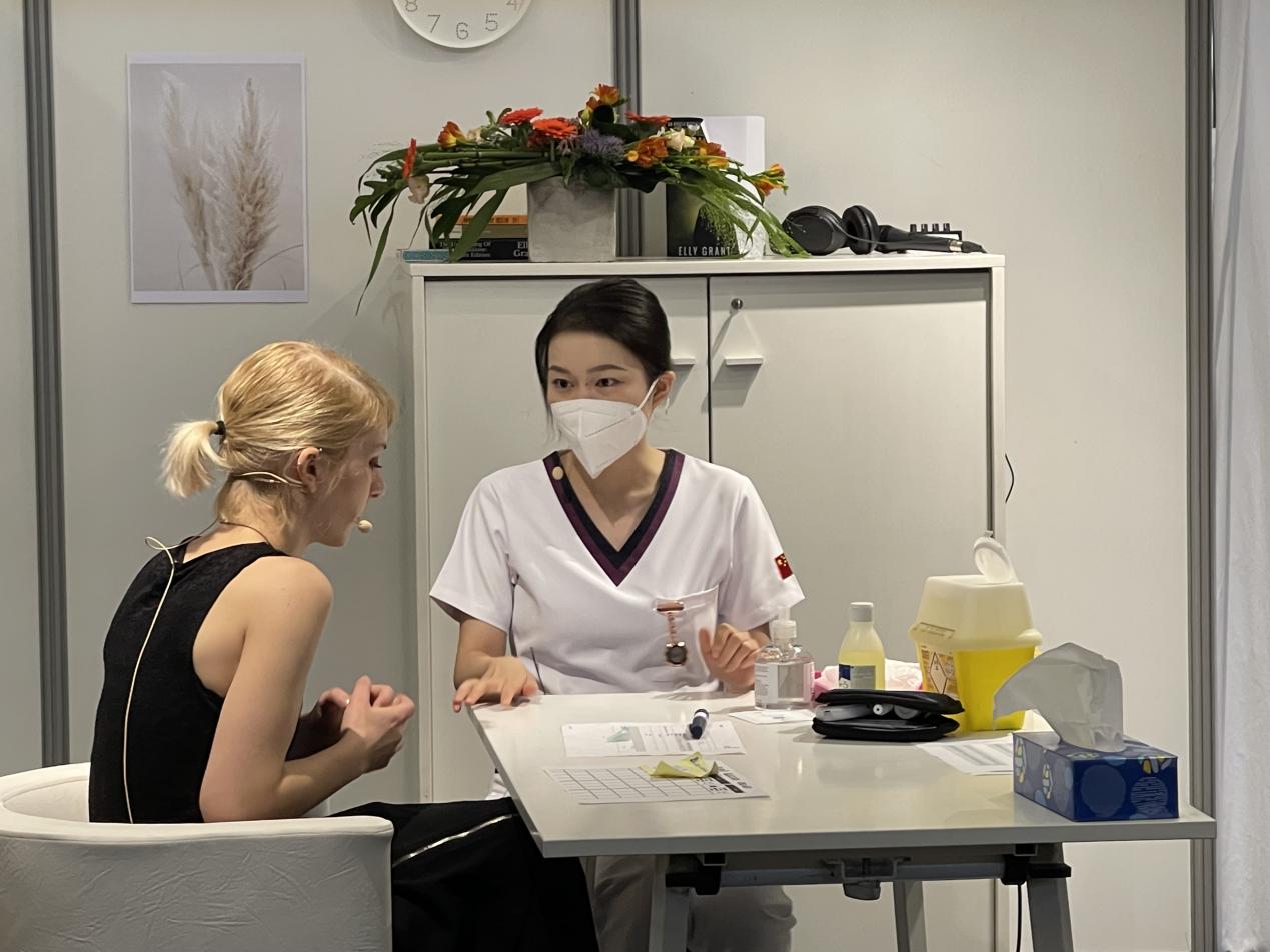 在2021年健康和社会照护项目国家队首次阶段考核中,吴怡欣老师以第一名的成绩获得了参加2022年世界技能大赛特别赛的入场券。在前期训练的基础上,针对公布的赛题,由专家组长、专家、教练组成的备赛团队进行了为期100天冲刺集训,在牵头基地上海健康医学院和河南医药健康技师学院、重庆市卫生技工学校、山东医药技师学院、黑龙江省林业卫生学校5个基地领导的大力支持下,组织了高强度的模拟考核,与其他国家专家、选手线上指导和集训,整装待发,出征法国。4天的比赛赛程,吴怡欣的16项工作任务安排相对均衡,分别是4、4、5、3项,赛前5天抵达波尔多的吴怡欣迅速调整,以最佳的状态投入比赛。赛场上的吴怡欣技艺精湛、温暖关爱、笑容灿烂、自信满满……面对膝关节术后伤口疼痛的病人,她用专业的技能缓解病人疾病带来痛苦;面对不想让妈妈离家上班的唐氏综合症女孩,她用甜美的歌声安抚了女孩无助的焦虑;面对车祸后截肢的空姐,她用倾听、理解和支持给予病人强大的力量;面对找不到自己房间阿尔茨海默症患者,她用智慧和温暖帮助病人找回深藏内心的那份珍贵;面对重度偏瘫失望无助的病人,她用精湛的技术和耐心的关爱帮助病人重拾信心。吴怡欣赛场上的优异表现赢得了标准化病人的啧啧称赞,赢得了裁判专家的高度认可,赢得了围观观众的阵阵喝彩。同时吸引了国内外各家媒体的采访和报道。
