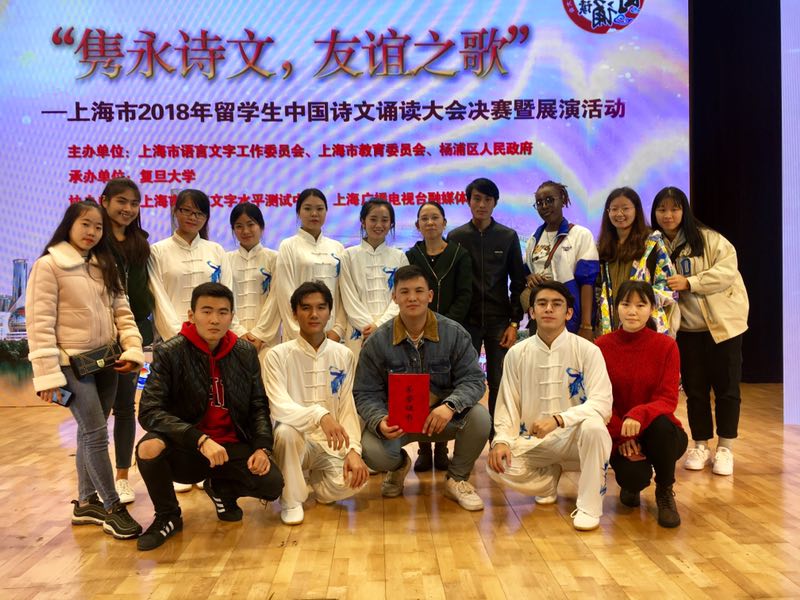日前,上海市国际学生中国诗文诵读大会决赛暨展演活动在复旦大学新江湾校区报告厅落下帷幕。我校临床医学院16级来自哈克斯坦的留学生阿依奔凭借较强的对中国诗文理解力、流畅的口语表达和临场应变能力,荣获个人二等奖, 再一次与来自沪上名校复旦大学、上海交通大学、华东师范大学以及上海外国语大学的胜出选手登上领奖台;同时,我校参加本次展演活动的太极表演受到了现场评委和观众的一致好评。