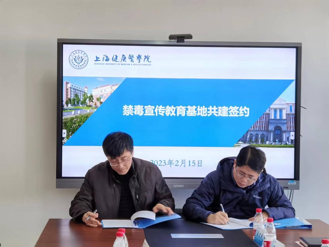 2023215日上午,上海健康医学院医疗器械学院与上海市青东强制隔离戒毒所禁毒宣传教育基地共建签约仪式在新南苑18号楼506会议室举行。医疗器械学院党总支书记李晓欧、学生工作负责人杨美、实验实训中心副主任樊丞成、讲师朱耿、团总支书记刘一丹、辅导员杨晓哲,上海市青东强制隔离戒毒所副所长王昀、科长许大文、五大队大队长周明、政治处副主任王文进、心理矫治中心主任江宁、教育矫正中心主任唐冲、六大队副大队长王晓春,共同出席签约仪式。
