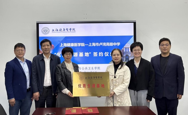 11月5日下午,上海市卢湾高级中学校长何莉、副校长吴建华应邀来访我校健康与公共卫生学院。学院党总支书记顾斐雯、副院长那立欣、副院长张浩、学生工作负责人何双泉接待,并陪同参观了健康与公共卫生学院和学校实践教学中心。参观交流结束后,张浩代表学校与上海市卢湾高级中学校长何莉签订了“优质生源基地”协议书并授牌。