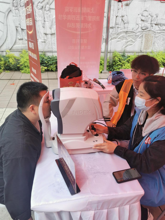 EYE健康志愿者团队负责为市民进行视力筛查、测量视力、眼镜清洗,为市民进行眼健康知识的相关科普,解答用眼问题。