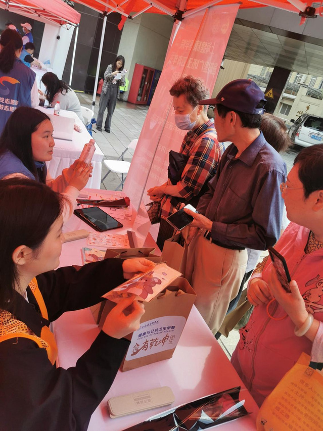 为深入学习贯彻党的二十大精神,进一步继承和发扬“五四”精神,上海健康医学院校团委积极响应国家《健康中国行动(2019-2030年)》文件精神,迎接第三届上海市“学生劳动教育宣传周”活动。校团委特组织健康与公共卫生学院团总支、医学技术学院团总支和国术整复运动队的“健康小橘子”们投身五四青年节渔阳里广场为民服务志愿者活动。青春为民服务是此次主题教育中深化“我为群众办实事”实践活动的具体体现,健康青年们以志愿服务为载体,紧扣红色脉搏,回应市民需求,用朝气谱写志愿服务新篇章。以志愿之名,赴青春之约,答时代之卷。