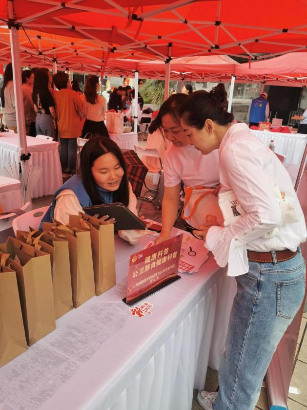 公卫膳食营养科普志愿服务团队对前来咨询的市民开展食品营养标签解读,常见家庭采购物品营养成分介绍,解释营养学上的零食定义。通过营养标签科学选择健康零食,以常见食品为例,给市民们介绍高钠、高糖食物的危害,引导老年人重点注意钠的摄入含量,为大家科普健康膳食营养概念。一位市民笑着说:“谢谢你们,小标签,大健康!以后饮食要多多注意了。”