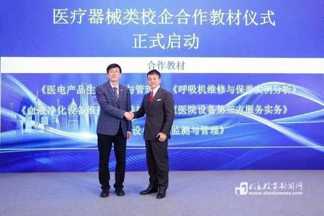 现场还举行了医疗器械类校企合作教材启动仪式,上海健康医学院医疗器械学院党总支书记李晓欧与上海拓美医疗管理有限公司副总经理邹航共同打开合作启动按钮,通过此次教材的合作编写,双方致力于培养更多专业的医疗器械人才,合作教材将为学生提供更多实际案例,极大提升教育质量与实践能力。