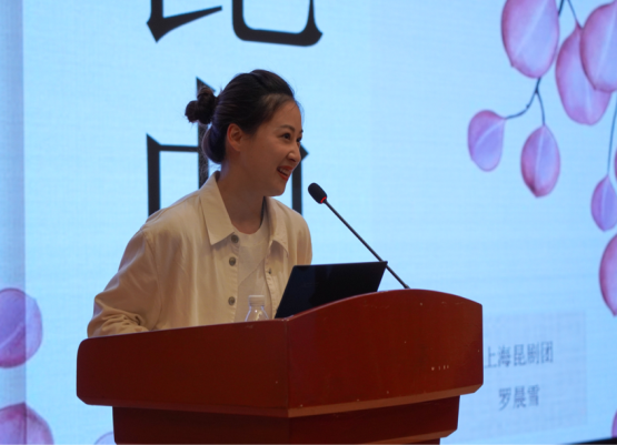 “昆曲有六百年的历史,被称为‘百戏之祖’。昆曲,作为中国传统戏曲的瑰宝,其独特的唱腔和表演艺术令人陶醉。它融合了诗词、歌赋、舞蹈、戏剧等多种艺术形式,展现出深厚的文化底蕴和艺术魅力。”罗晨雪老师以时间为线索,从昆曲的历史、昆曲的重大变革、艺术形式、表演形式等不同方面介绍了昆曲文化知识。由名角大师、昆曲之美讲述到四功五法,给观众带去了别样的美学展示。