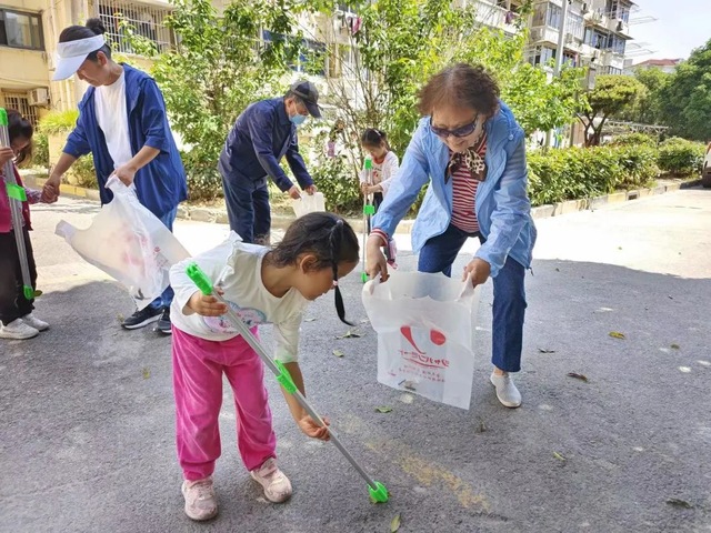 另一边,一场由上海市慈善基金会主办的“百校慈善行动——陪爷爷奶奶‘嘎讪胡’”活动正在温情上演。以“劳动最光荣”为名,梅陇六村和梅陇幼儿园12对“跨代组合”小手拉大手,在花坛间、树荫下仔细搜索着垃圾。孩子们热情天真,爷爷奶奶们耐心慈爱,活动结束后,一张充满笑容的大合照不仅记录了这美好的一刻,也成为“一老一小”最宝贵的“绿色印象”。