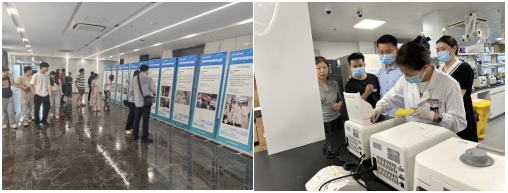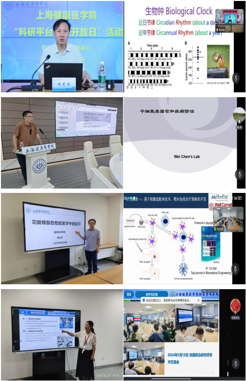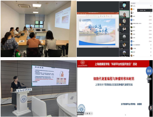 今年开放日活动,学校同时开放了16个科研平台和团队所在实验室,迎接全校教师、研究生、本科生及附属医疗机构科研人员前往参观交流,其中包含上海市分子影像学重点实验室、上海市智能医疗器械与主动健康协同创新中心和“一带一路”生物医药国际技术转移协同创新中心等省部级科研平台。6位科研团队老师代表进行了线上线下同步宣讲,对各自实验室建设及团队科研工作进行了详细介绍,并与线上线下师生积极交流互动。