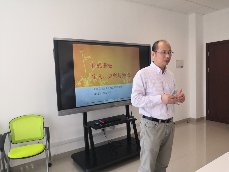 2019年10月24日,上海立信金融会计学院外国语学院的邵军航教授为上海健康医学院外语教学部的全体教师做了题为“构式语法:定义、类型与特点”的讲座。