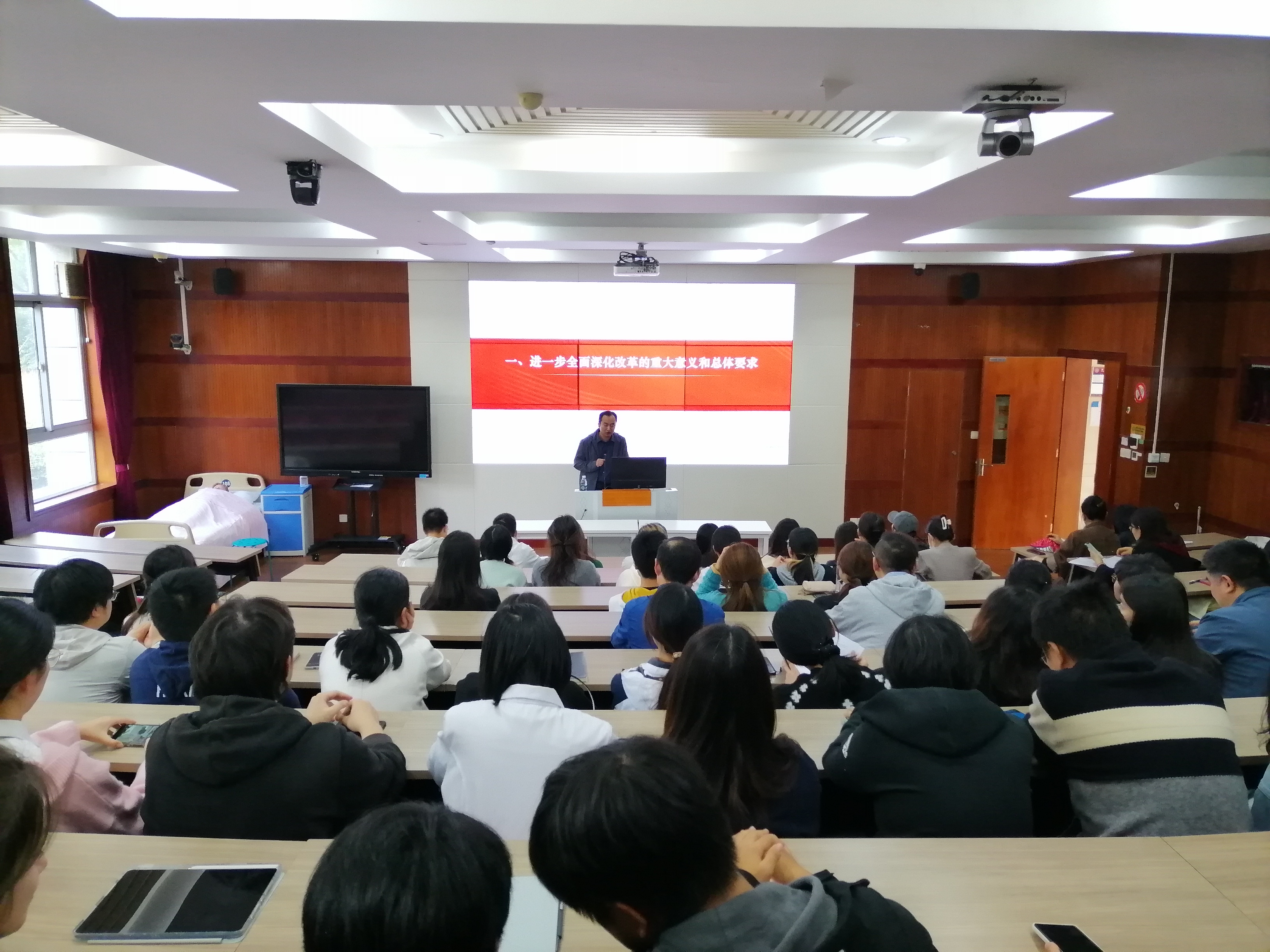 11月7日,基础医学院直属党支部、临床医学院党总支联合举行学习贯彻党的二十届三中全会精神专题辅导报告,两个学院全体教师、临床医学院部分学生骨干及2024级青海少数民族预科班学生参加。上海市党的建设研究会特邀研究员、上海大学马克思主义学院副教授、全国高校思政课教师教学展示比赛一等奖获得者孙会岩作主题为“进一步全面深化改革 推进中国式现代化的行动纲领——学习领会党的二十届三中全会精神”辅导报告。