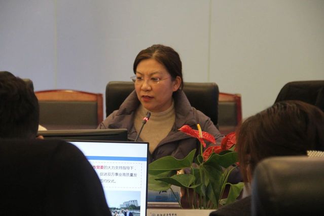 江湾医院院长徐卿荣介绍江湾医院建设发展情况、院校合作实践成果以及今后进一步提升合作机制的方向期望。