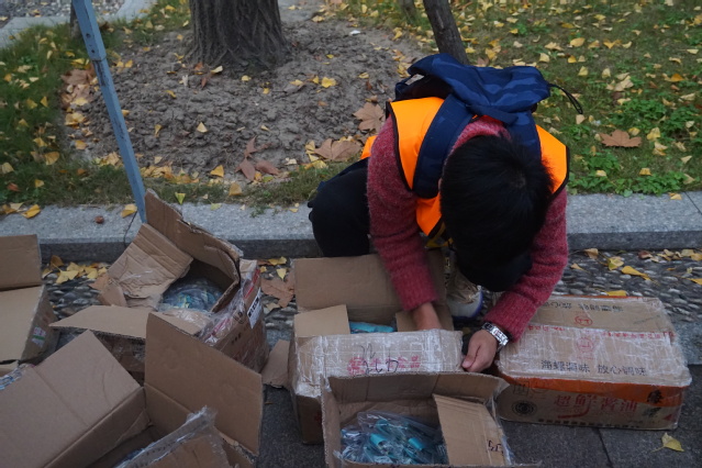 赛道起点组:比赛开始前,同学们为运动员、车辆做指引;为选手们存放包裹以及帮助裁判进行运动员的检录;志愿者一起组成人墙,站定于运动员集合区域的首尾。