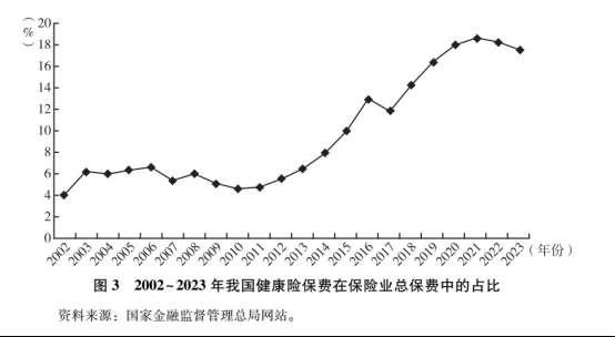 最新蓝皮书显示,整体而言,我国健康保险发展面临良好机遇。首先,国家政策加大支持力度为健康保险发展营造了良好制度环境;其次,2011年以来,我国卫生总费用受到来自人口老龄化、疾病谱变化和医疗服务供给扩张三方面因素的叠加影响,呈现持续增长趋势,卫生总费用平均增速高出GDP增速2.5个百分点以上,2023年卫生总费用占GDP的比重达到7.2%。不过,在筹资端,政府卫生支出和基本医疗保障支出很难与之同步增长,这打开了健康保险发展空间。