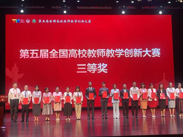 2025年8月19日,由教育部高等教育司指导、中国高等教育学会主办的第五届全国高校教师教学创新大赛全国现场赛在北京理工大学落下帷幕。我校医学技术学院董晛老师团队凭借扎实的教学功底、创新的教学设计理念和出色的临场汇报,荣获第五届全国高校教师教学创新大赛新医科中级及以下组“三等奖”,实现了学校在该项国家级赛事中的历史性新突破。