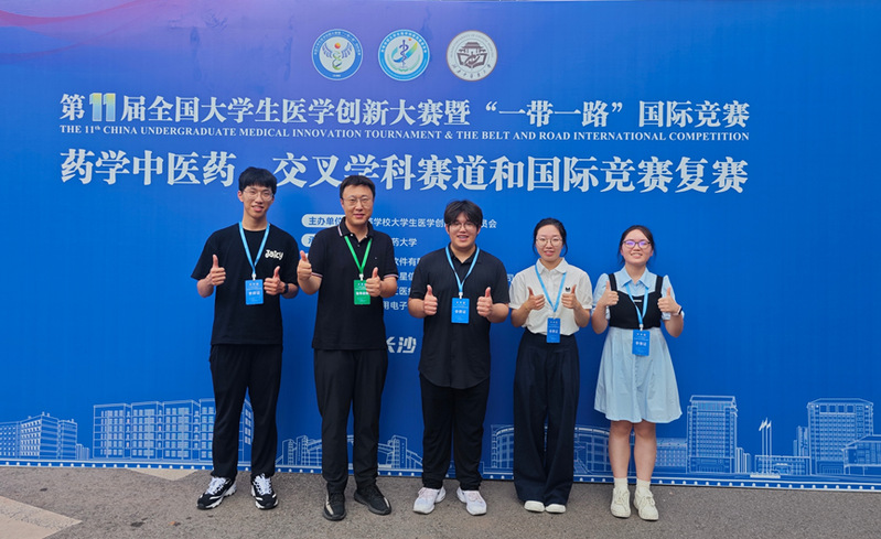 2025年8月19日,第十一届全国大学生医学创新大赛暨“一带一路”国际竞赛总决赛在山东大学圆满落幕。我校协同科研中心上海市分子影像学重点实验室创新实验班——“HealthX 拔尖班”学子在杨浩教授的悉心指导下,凭借扎实的科研功底与创新思维,在激烈角逐中脱颖而出,斩获国赛银奖,创造了我校在该赛事历史上的最佳成绩。参赛队成员包括来自药学院和医学影像学院的毛子俊、康谢未、张潘博、张佳鑫、黄圣喆五位同学。