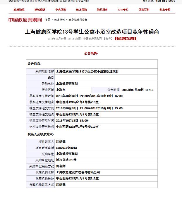 上海健康医学院13号学生公寓小浴室改造项目竞争性磋商