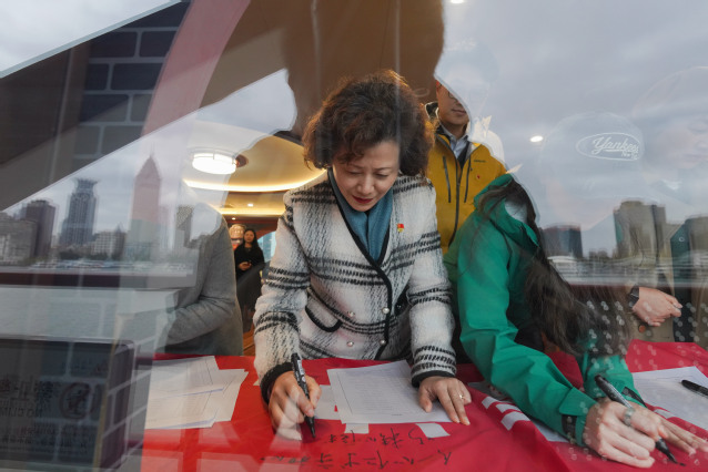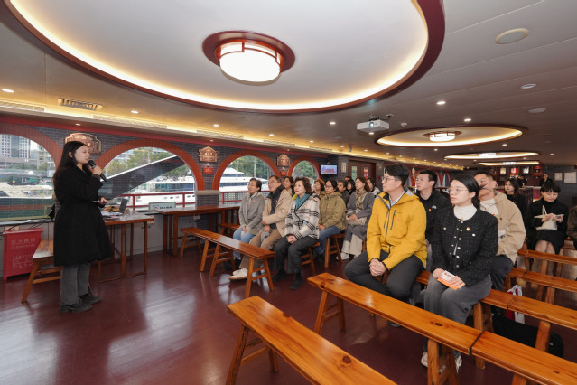 师生一行登上这艘“流动的红色课堂”。在工作人员的细致讲解中,百年前中国共产党艰辛创业的壮阔历程徐徐铺展——无数仁人志士为救亡图存挺身而出,在民族危亡之际点燃革命星火。游船以“开天辟地”“光荣之城”“人民城市”三个篇章为脉络,通过丰富史料与生动呈现,让伟大建党精神的内涵与人民城市理念具象化、可感化,让红色基因在沉浸式学习中根植于心。
