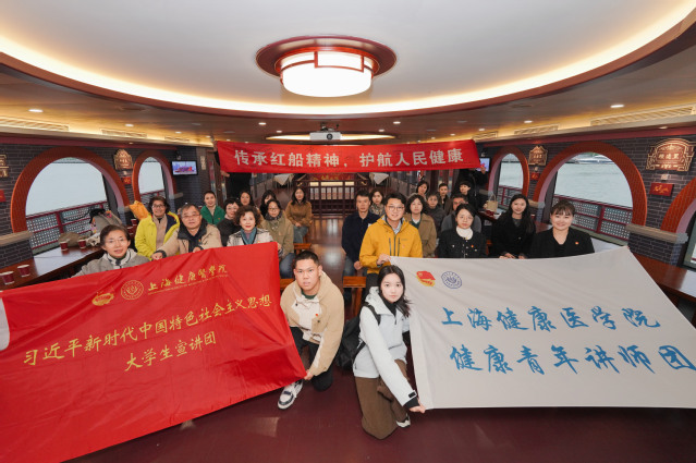 “健康中国2030”的号角嘹亮依旧,“十五五”的征程鼓点铿锵。此次“党的诞生地”主题党日活动,更是我校健康青年讲师团与习近平新时代中国特色社会主义思想大学生理论宣讲团的一次生动青春实践。青年师生以微团课为载体,将红船精神与医德传承深度融合,用青年视角诠释使命担当,用鲜活表达传递红色力量。“沉浸式学习+青年健康说”的实践模式,既让红色基因在青春宣讲中落地生根,也让医德初心在实践历练中愈发坚定,把初心镌刻在为人民谋幸福的行动里,把使命融入为民族谋复兴的征程中,以医者仁心践行时代担当,用青春之姿书写健康中国新篇章!