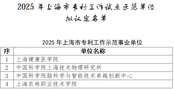 近日,上海市知识产权局公布2025年上海市专利工作示范单位认定名单。上海健康医学院凭借扎实的知识产权管理基础、突出的创新创造成效与显著的成果转化实绩,成功获批“上海市专利工作示范单位”。这标志着学校知识产权工作迈入高质量发展新阶段!