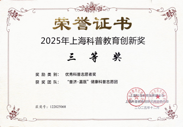 此次荣获上海科普教育创新奖优秀科普志愿者奖(团队),不仅是对“普济·嘉医”健康科普志愿团过去工作的表彰与肯定,更是对其持续推动健康科普事业发展的激励。未来,团队将继续深化志愿服务与科普创新,为提升全民健康素养、推进健康中国建设贡献更多力量。