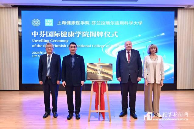 本网讯(记者 程媛媛)3月13日,上海健康医学院中芬国际健康学院揭牌仪式在上海健康医学院举行。中芬学院是由上海健康医学院与芬兰拉瑞尔应用科学大学(Laurea University of Applied Sciences)合作举办的中外合作办学机构,将于今年起招生。