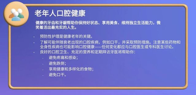 口腔健康是国民健康的重要组成部分,也是推进健康中国建设的基础性环节。从生命早期的乳牙萌出到银发岁月的功能维护,口腔照护贯穿全生命周期,关系着人民群众的生活质量与幸福指数。让我们以世界口腔健康日为契机,凝聚社会共识,践行科学理念,将口腔健康融入日常、做在经常,以全民健康素养的提升,为美好生活筑牢健康根基。