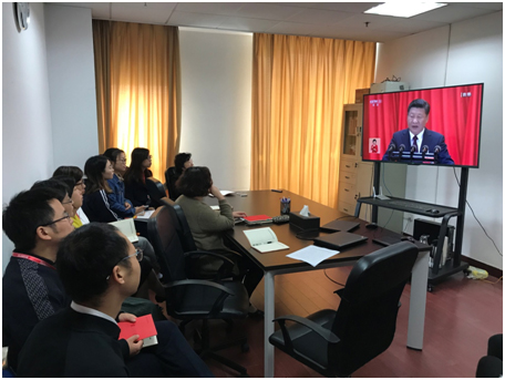 10月18日上午9:00,随着雄壮的国歌声响起,广大人民期盼已久的党的十九大胜利召开。在北苑1号楼1013室,行政第一联合党支部全体党员共同观看了开幕式。