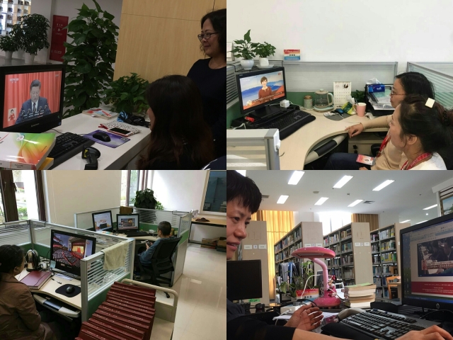 通过研读习主席的汇报,全体职工深入理解“不忘初心、牢记使命、为实现中华民族伟大复兴的中国梦不懈奋斗”的意义,大家认真观看,热血沸腾、心中激情澎湃,在感慨祖国发展之迅速的同时,也纷纷表示不论身在何地、处于何种岗位,都将团结一心、履职尽责、砥砺前行,撸起袖子加油干,以新的精神状态和奋斗姿态,为学校和图书馆的发展贡献自己的一份力。(图书馆)