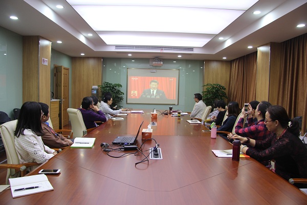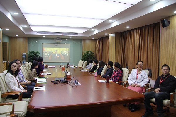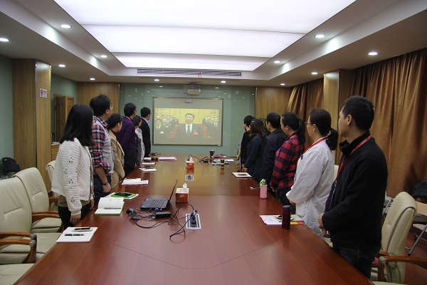 10月18日上午8:45分,附属卫校党总支组织广大党员干部集中在210会议室观看中国共产党第十九次全国代表大会,正式开幕前,大家满怀信心,充满期待的守候在显示屏前。上午9时,大会正式开幕,所有党员全体起立一起奏唱中华人民共和国国歌。接着大家认真观看了习近平总书记代表十八届中央委员会向大会作报告。