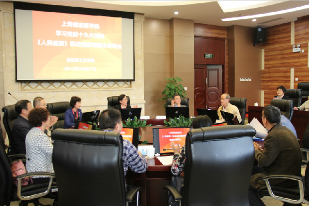 10月27日,我校马克思主义学院召开了“学习党的十九大精神暨《人民健康》思政选修课集体备课会”,校党委书记郑沈芳教授、校长黄钢教授、副校长唐红梅教授、上海交通大学特聘教授、中央马工程首席专家陈锡喜教授、复旦大学高国希教授、上海市德育中心副主任宗爱东教授和兄弟院校上海海洋大学、上海电力学院马院相关负责人、《人民健康》课程主讲嘉宾、学校相关职能部门负责人以及马克思主义学院全体教师出席了会议。
