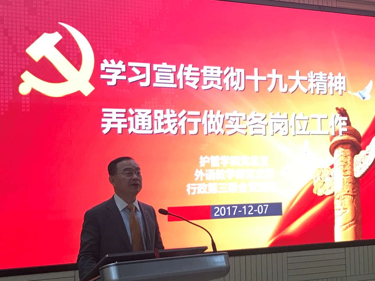 会议伊始,PBL首先得以从宏观层面切入,全体与会人员认真聆听了黄钢校长的十九大宣讲报告——《人民健康与我校师生的责任》,他在报告中旁征博引,通过数据比对及典型分析深入浅出的解读了健康中国战略背景下“健康人”的责任与使命,号召大家从今天开始,把握健康人生。