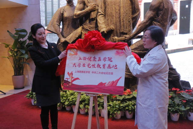 我校全体党组织书记、发展对象、入党积极分子百名师生进行的一场深刻地党性洗礼。上海健康医学院党委书记郑沈芳、二大纪念馆副馆长尤玮共同为“上海健康医学院—中共二大纪念馆大学生党性教育基地”揭牌,解放日报发行中心主任朱长元为健康医学院赠送《解放日报》珍藏版党章。在场全体党员在郑沈芳书记的带领下,重温入党誓词,参观各展厅,聆听了明灯讲坛微党课。校党委书记在讲话中强调,各级党组织要用好中共二大会址纪念馆这个教育基地,探索新形势下党性教育的新途径、新方式,健康人要“不忘初心、牢记使命”,为人民健康事业不懈努力。