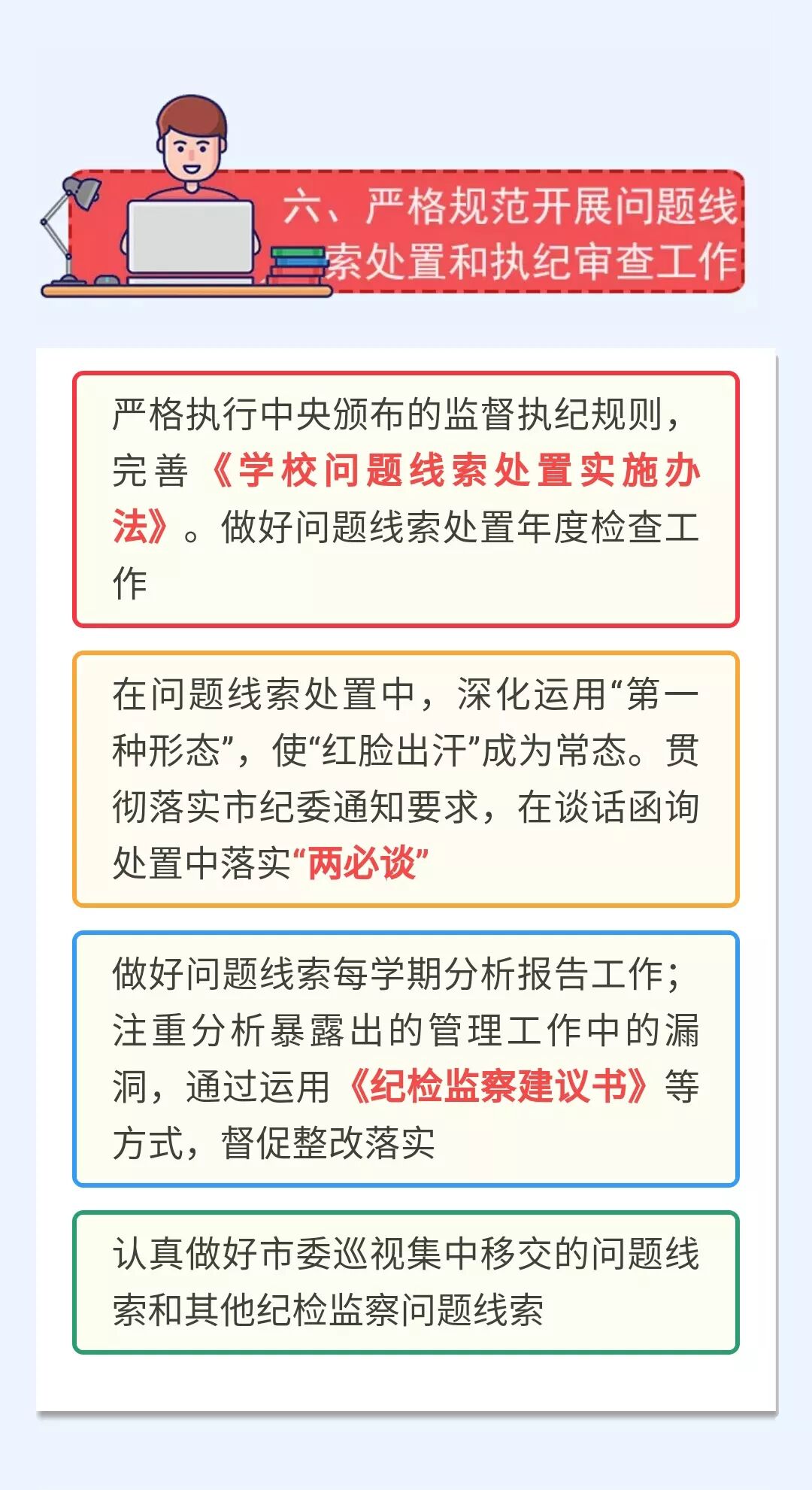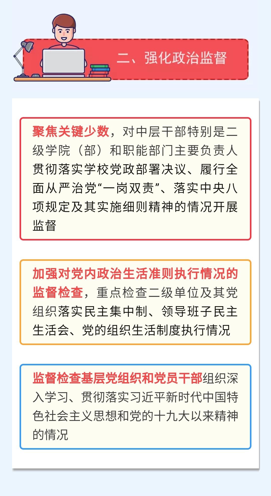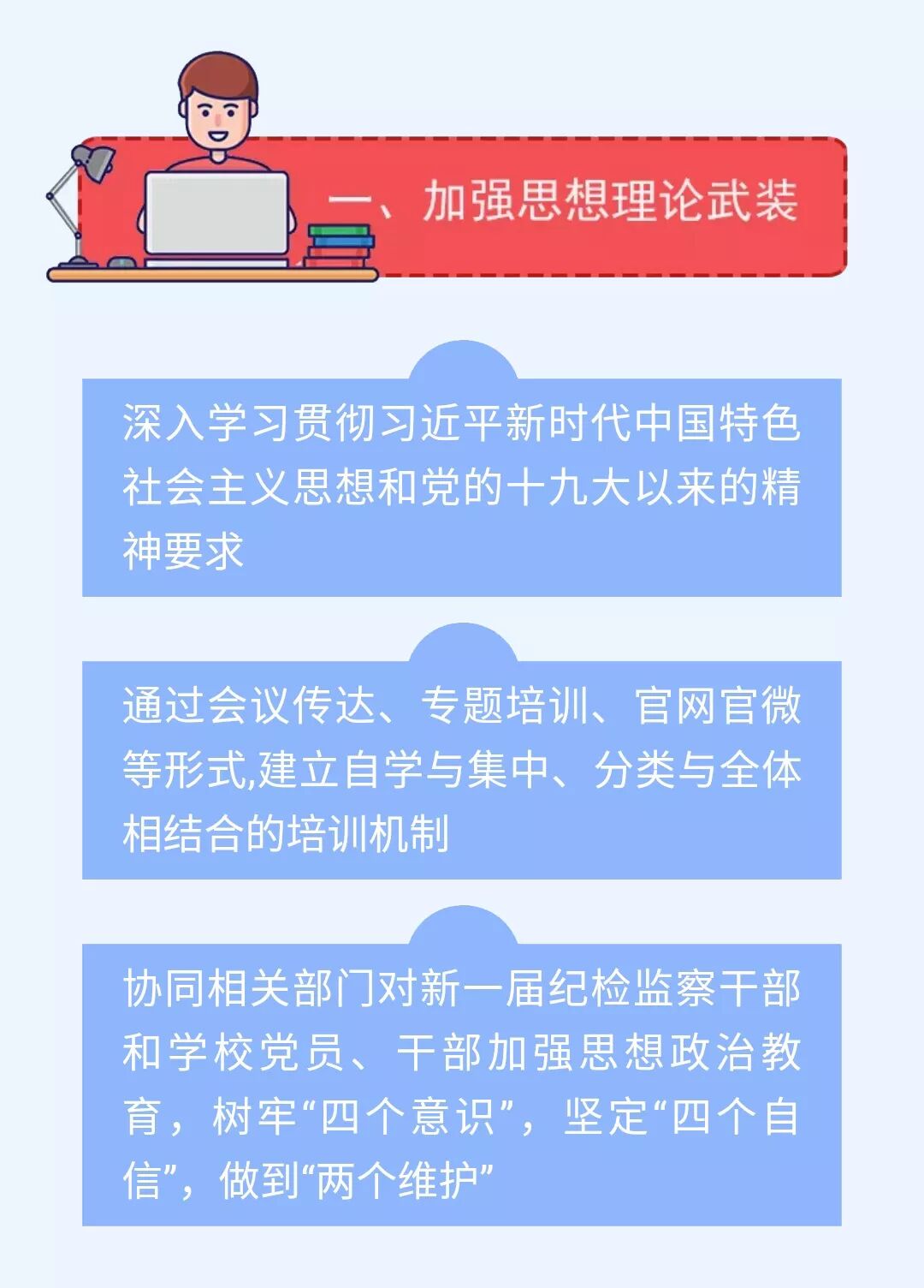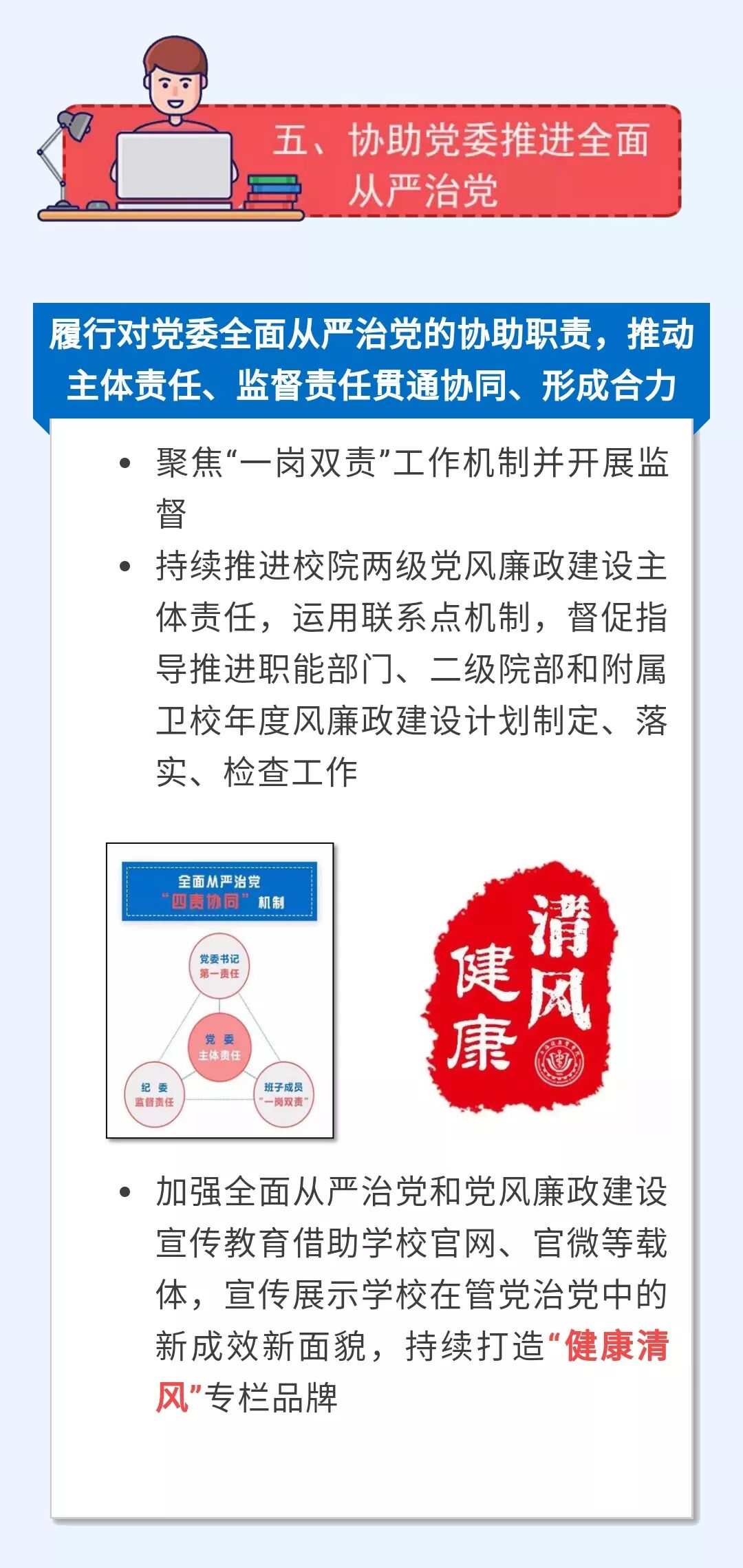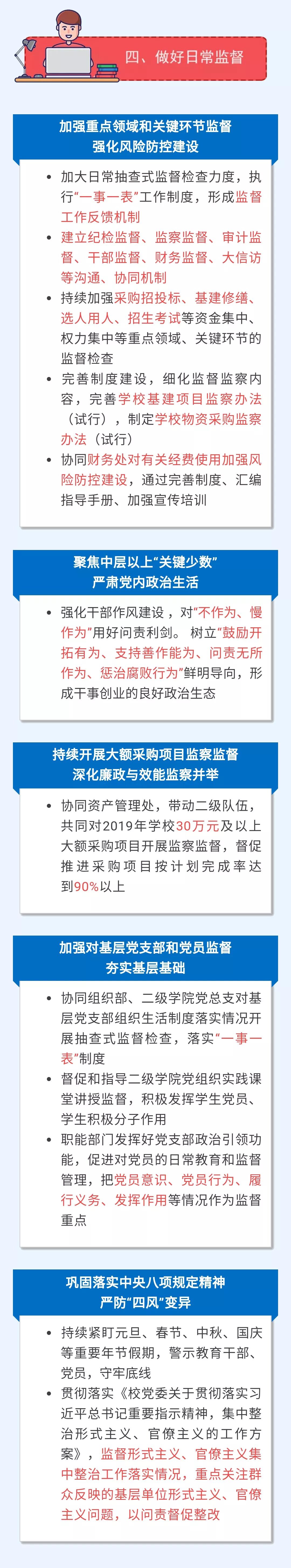 2018年,学校纪检监察工作取得了一定的成绩。2019年,学校各级纪检监察组织和纪检监察干部振奋精神,团结一致,不松劲、不停步、再出发,继续为学校各项事业的健康发展保驾护航。本期健康清风带您一图了解校纪委今年准备干点啥。