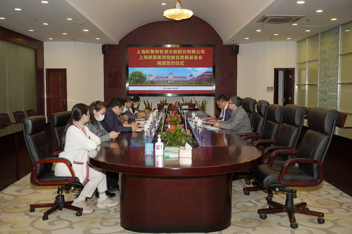 11月9日上午,学校教育发展基金会与上海欧雅斯智慧水务股份有限公司(以下简称“欧雅斯水务”)的捐赠签约仪式隆重举行。欧雅斯水务董事长高天放、总经理李信、董事长助理沈怡青;学校党委宣传部部长、教育发展基金会理事长李兆伟,科技处处长莫国民,医学技术学院党总支书记、院长刘敏娟,医学技术学院副院长李延飞,产学合作处科长谭燕出席捐赠签约仪式。仪式由教育发展基金会秘书长、校友工作办公室副主任王红主持。
