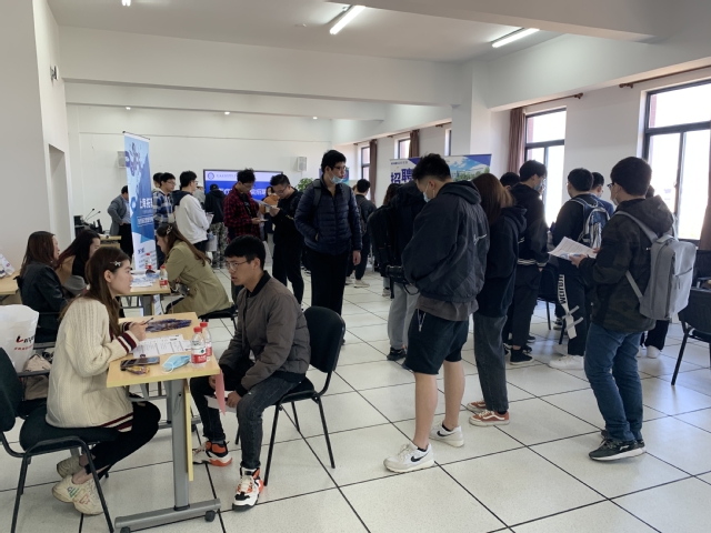 10点开始,同学们依次进入会场,在各个单位面试台前排队、投递简历、参加面试。同学们大多一家接着一家的面试,不放过任何一个机会;每个人的手里几乎都拿着数家公司的宣传册。