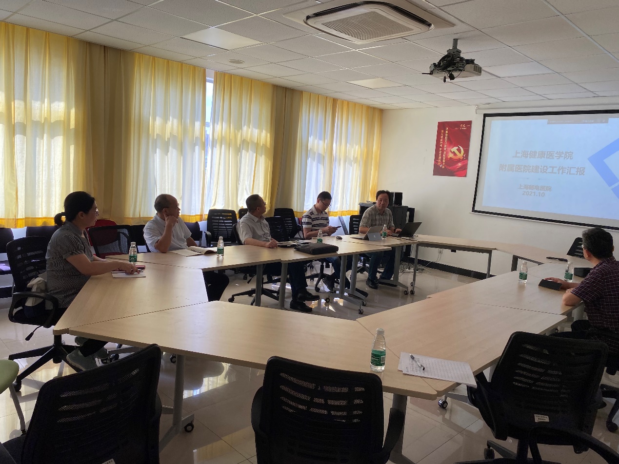 2021年10月8日,上海邮电医院一行3人到护理与健康管理学院洽谈共建校外实训基地事宜。会议由健康服务与管理教研室主任赵芳副教授主持,护理与健康服务管理学院院长朱爱勇、学院实践管理办公室主任王晓巍、健康服务与管理学科带头人郑国华教授、上海邮电医院胡院长、医政科于科长参加会议。