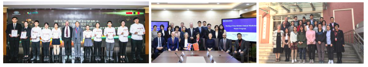 积极引进国外优质医学教育资源,持续加强与世界知名医学院校合作,不断拓展学生国际化视野。与比利时列日大学、英国伦敦大学学院、英国皇家全科医师学院、法国斯特拉斯堡大学开展密切合作,形成“中-比医学科学硕士项目”、“英国全科医学师资培训项目”、“全科医师综合能力提升海外培养计划项目”等品牌合作项目。首届5名学生已顺利完成比利时列日大学医学科学硕士全部课程及答辩,获得列日大学医学硕士学位。另外,与法国格勒诺布尔大学、比利时鲁汶大学等院校开展海外游学项目,学生在校期间拥有丰富的国际交流机会,首届本科生海外游学比例高达50%以上。