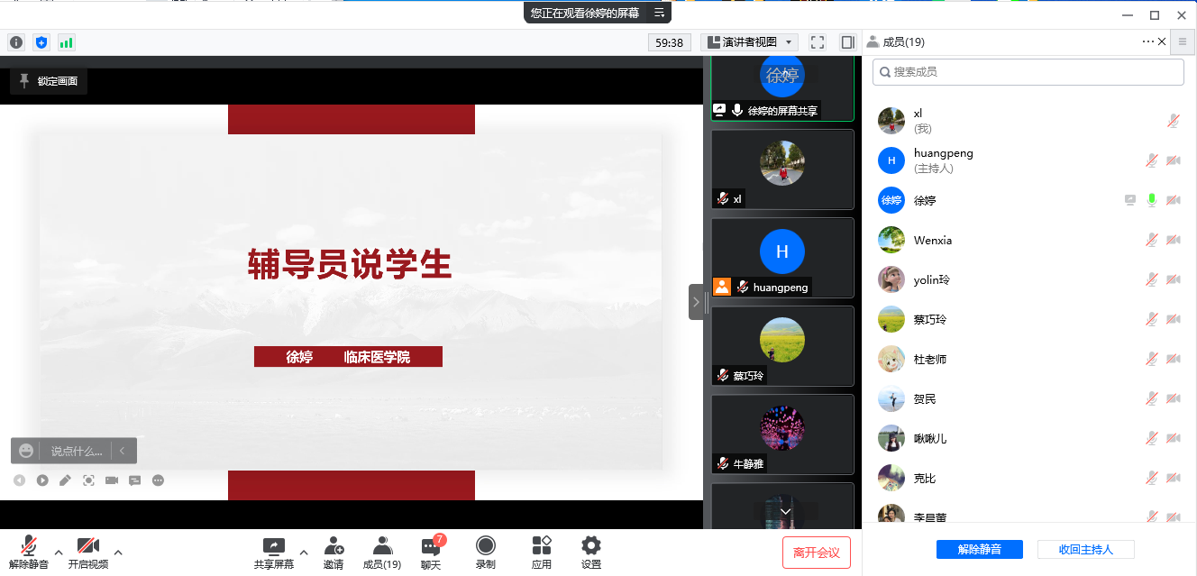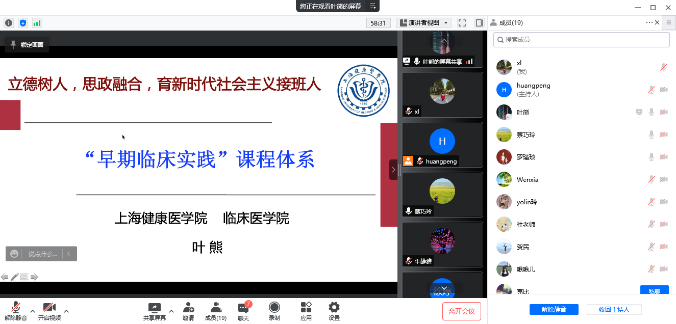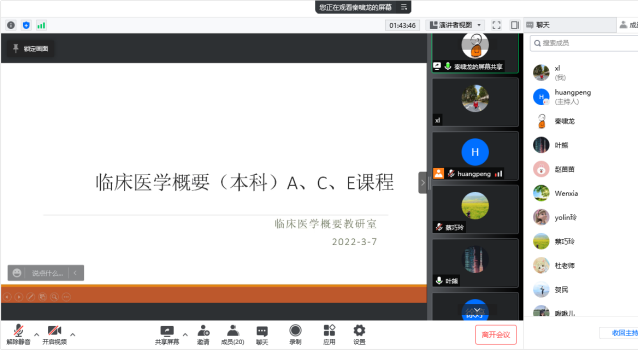4月7日下午,为进一步推进2022年本科教学合格评估自查自评工作有序有效开展,临床医学院院领导、专任教师、教学办、辅导员教师通过线上腾讯会议平台召开本科合格评估工作自查自评“N说”活动,针对专家反馈的意见,会前要求每位老师进行整改。会议由临床医学院副院长黄鹏老师主持。会上,蔡巧玲院长指出在疫情防控特殊时期,学院的本科合格评估工作不能放松,要保质保量按时完成本科合格评估相关工作,落实到具体老师。