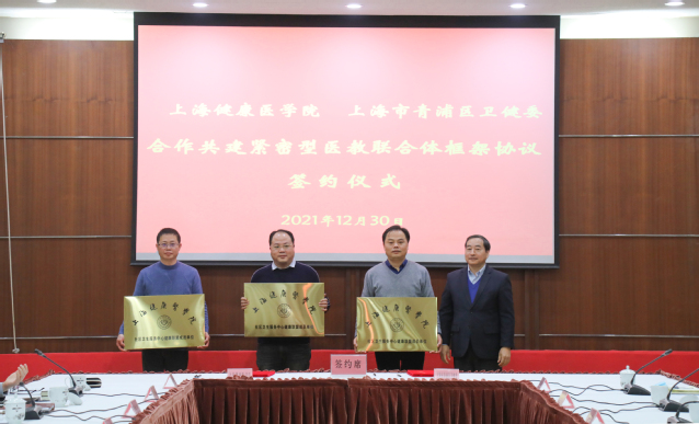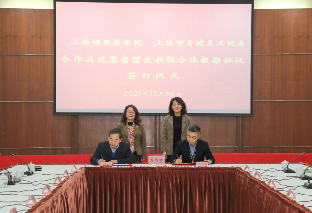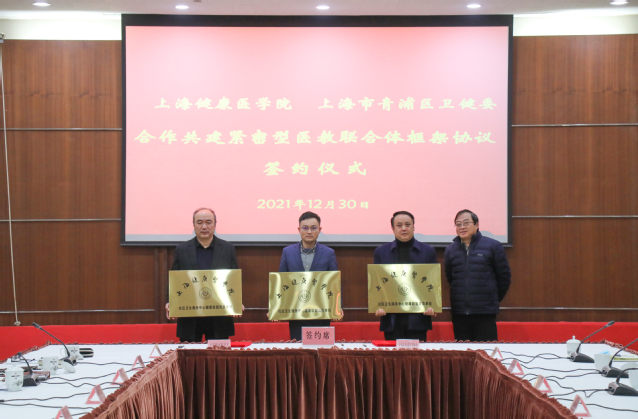 2021年12月30日,学校与上海市青浦区卫生健康委员会合作共建“上健医-青浦”紧密型医教联合体框架协议签约仪式在青浦区人民政府报告厅举行。学校党委书记郭永瑾,青浦区代区长、区委副书记杨小菁,学校党委副书记于莹、副校长陈小冰、副校长沈国芳,青浦区卫健委员会主任饶斐文、区卫生健康工作党委书记张明,以及学校相关职能部门、二级学院负责人,青浦区政府、相关医疗机构和社区卫生服务中心负责人出席签约仪式。仪式由青浦区卫生健康工作党委书记张明主持。