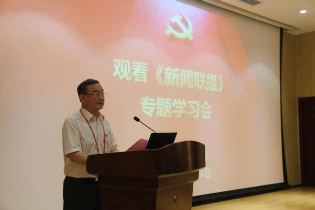 6月30日在学校北苑200人报告厅,全体校领导、党务部门负责人、各党总支、直属党支部书记、教师代表、学生代表集体观看中央电视台一频道晚间《新闻联播》节目,认真学习习近平总书记给复旦大学《共产党宣言》展示馆党员志愿服务队全体成员的回信精神。四位同志就学习习总书记回信精神,结合实际谈了体会。党委副书记、校长黄钢主持会议。