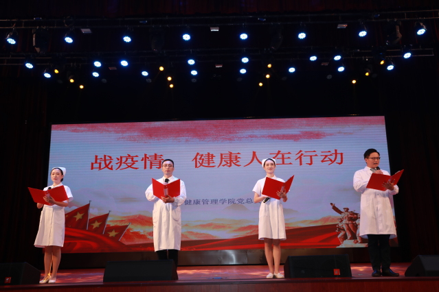 主题活动在全场奏唱国歌中拉开帷幕。郑锦书记说,2020年是爱国主义教育年、三全育人攻坚年和建党百年献礼年,站在这个重大时间节点上,我们既要回顾历史,增强光荣感和自信心,更要立足当下,推进新的事业和伟大征程。我们要努力做到“三个着力”,一是着力做好“四史”学习教育,坚定我们的理想信念、牢记初心使命;二是着力用好抗击疫情的生动素材,增强我们救死扶伤、医者仁心的责任担当;三是着力加强精神文明建设,宣传学校本科建校5年暨办学70周年的建设成就,弘扬埋头苦干、砥砺前行的奋斗激情。