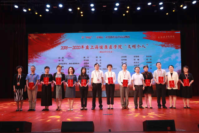 第二篇章,危难时刻显本色,战疫有我见初心。屏幕上展现了由党委宣传部制作的《致敬》微视频,生动展现了在人民生命安全受到极大危机时,我校师生、附属医院医护人员、校友,用不同方式履行白衣天使的职责,捍卫人民生命和健康,他们就是我们身边的英雄。由我校组织部、学工部、教务处、二级学院、附属医院、附属卫校、后勤服务中心、保卫处等讲述的真实故事《一切为了育人》。疫情就是命令,防控就是责任,他们在关键时刻选择逆行而上,毅然决然地践行党员初心,以实际行动为抗击疫情出一份力,奉献于抗击疫情一线,服务于防止疫情传播的社区,坚守于本职岗位教与学,我们都是“应考人”和“答卷人”。接着,副校长陈小冰、唐红梅、孔宪明为荣获2018-2020年度学校“文明个人”代表颁奖。