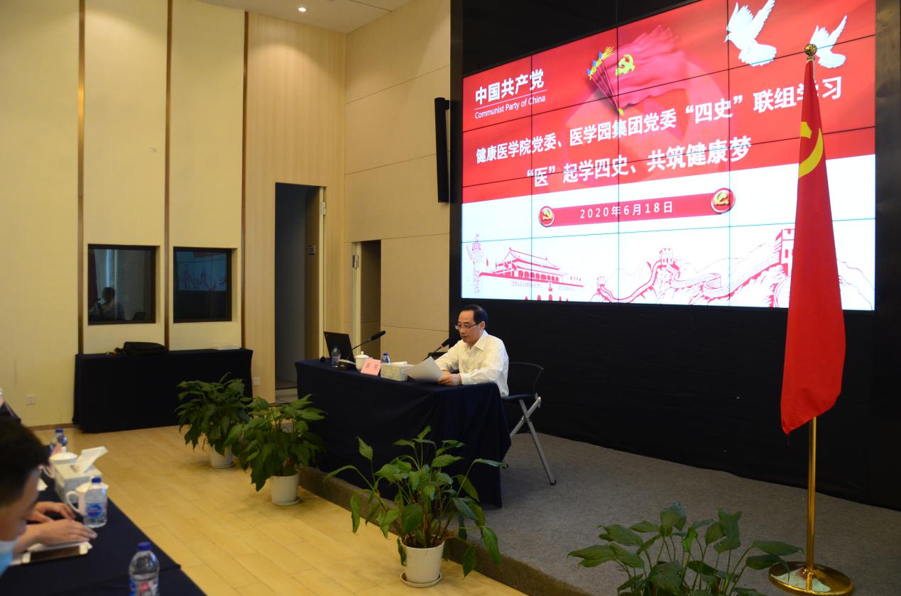为进一步强化区域化党建,增强党员干部永葆坚定信念、永葆奋斗精神、永葆为民情怀、永葆担当本色,6月18日上午,我校与医学园集团携手举办了以人民健康为主题的“四史”联组学习。校党委副书记于莹,全体党总支、直属党支部书记、组织部相关人员、医学园集团全体党支部书记、党小组组长、医学园区“两新企业”党组织干部等70余人参加了本次活动。