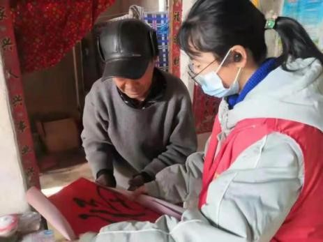 19级生物医学工程(本科)2班的任同擎同学在假期中参与大彦村志愿者写春联送祝福活动