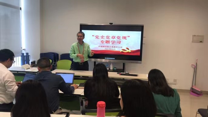 习近平总书记指出:“一切向前走,都不能忘记走过的路;走得再远、走到再光辉的未来,也不能忘记走过的过去,不能忘记为什么出发。”在建党百年之际,外语国交联合直属党支部上下正如火如荼地开展各项党史专题学习活动,本次党章专题学习,采用线下线上相结合的方式进行,线下集中学习由支部书记吕永红领学。