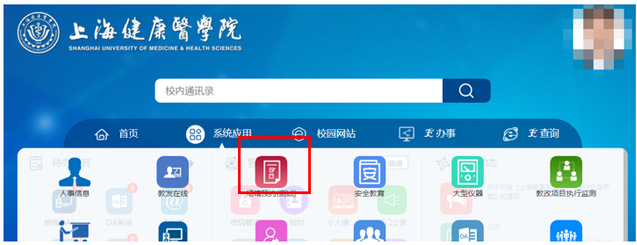 进入智慧门户,点击“系统应用”,再点击“场馆预约”图标即可进入: