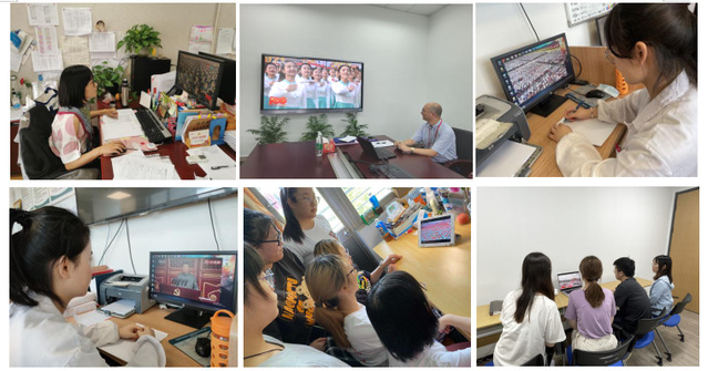 党总支书记、院长蔡巧玲,副书记贺民、副院长黄鹏、副书记罗瑾琰满怀激动喜悦的心情,在北苑1号楼200人报告厅集体收看庆祝大会实况转播。