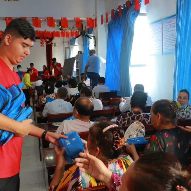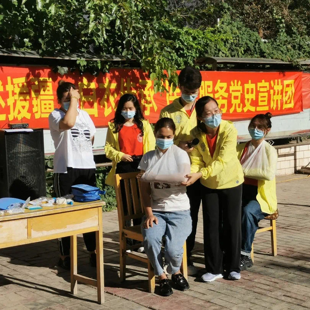 不仅如此,同学们把200个急救包送到社区各位居民手中,并将理论实际相结合,向居民们详细讲解了急救包中的物品及作用,不仅加深了知识,也在发扬医学精神同时为新疆地区的急救普及情况做准备。